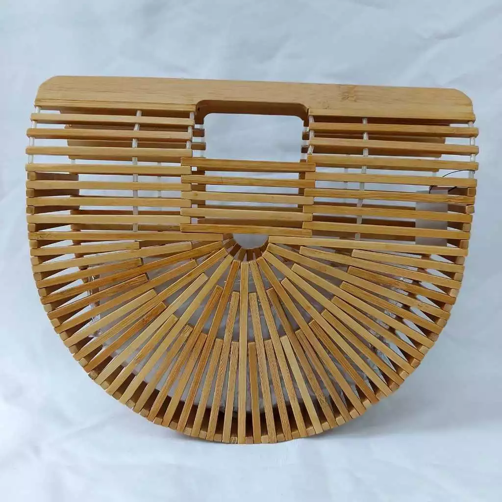 Feita com bambu natural de alta qualidade, sua estrutura circular proporciona um charme único, enquanto a alça confortável permite uso diário sem perder o estilo. O interior espaçoso acomoda todos os seus itens essenciais com praticidade e organização.
