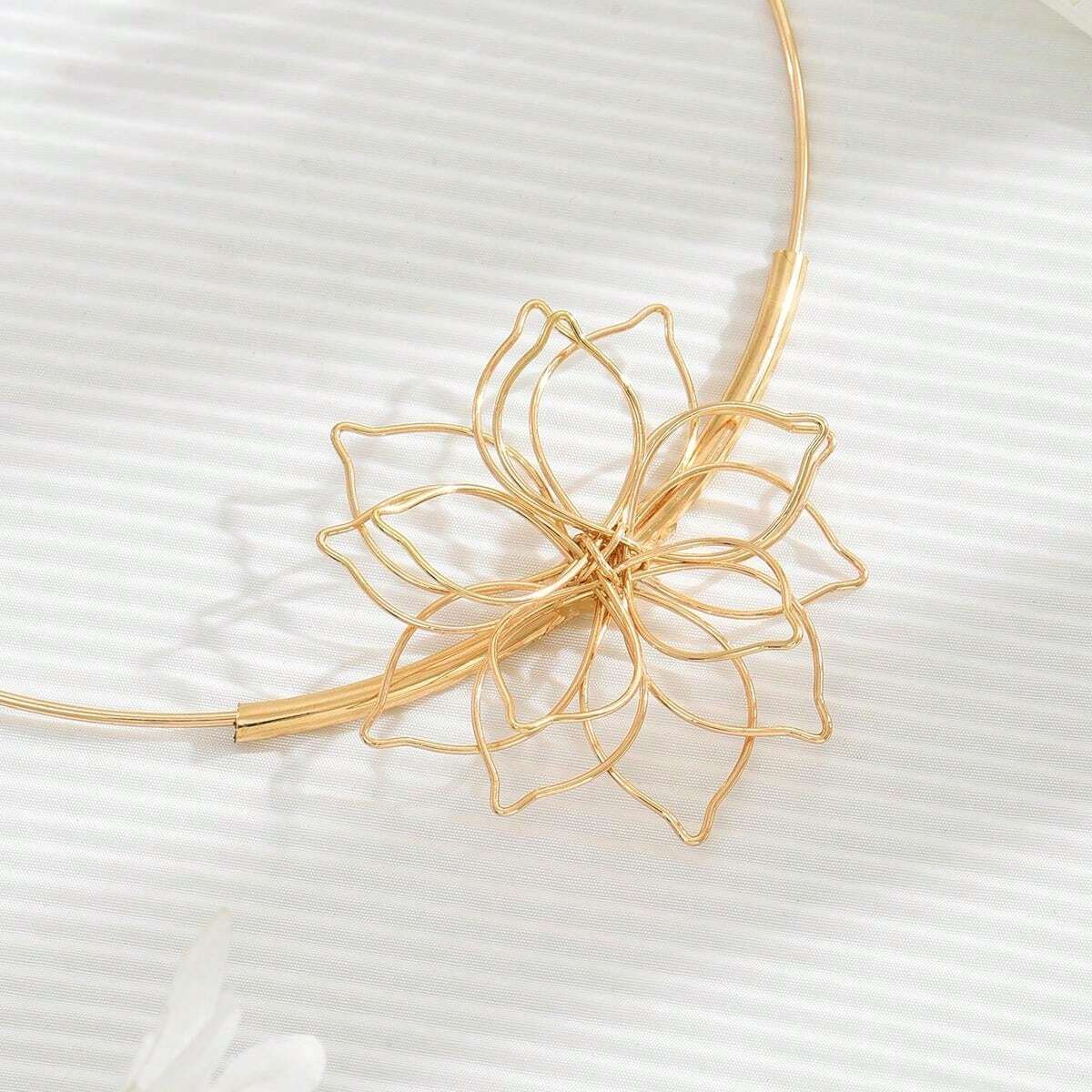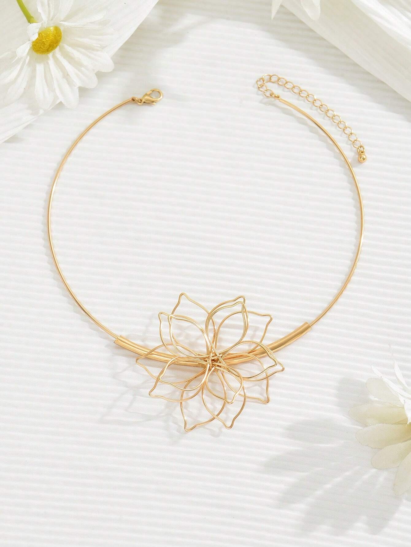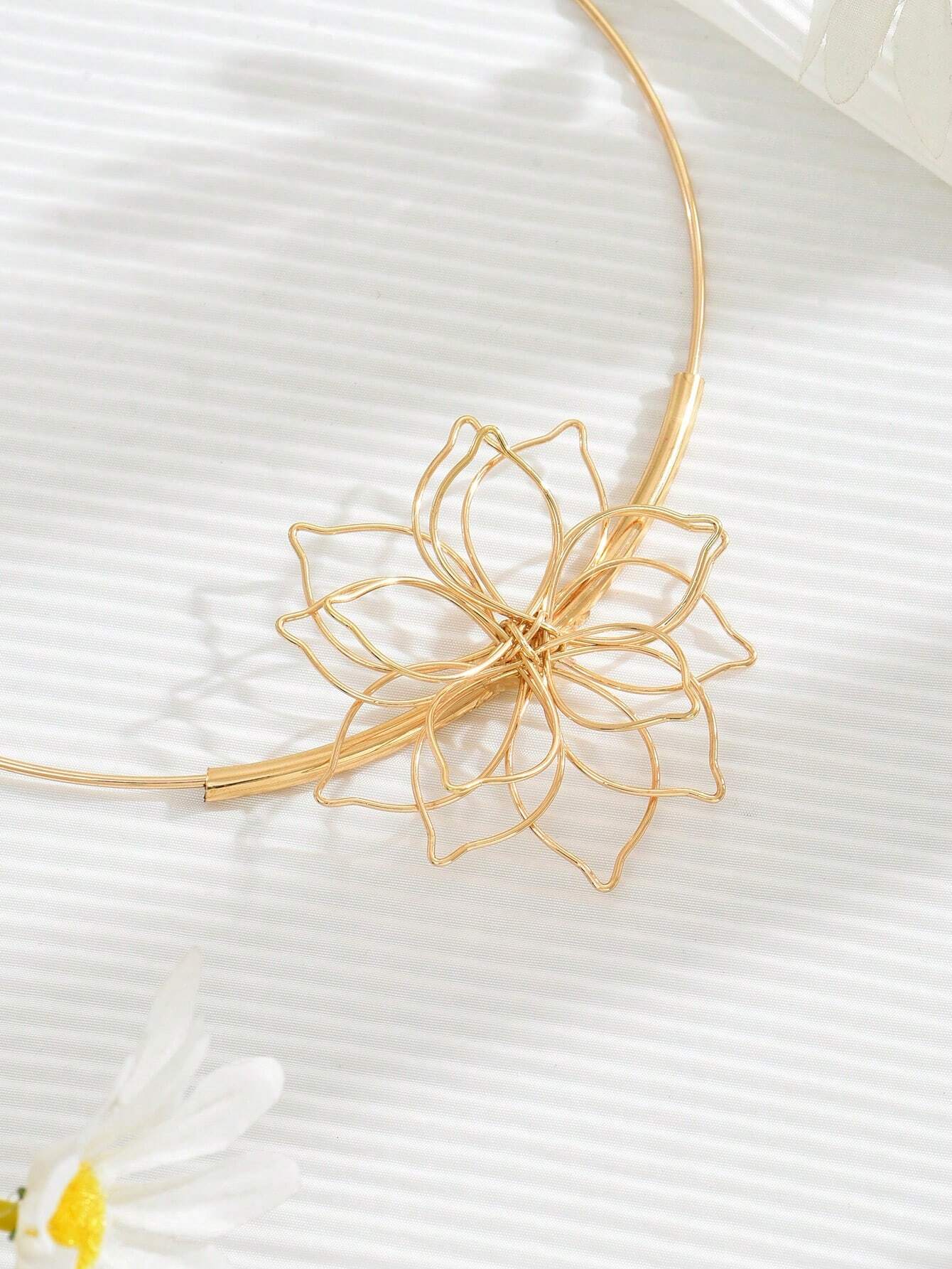 Colar Choker de Metal Dourado com Decoração de Flores Estilo Europeu e Americano