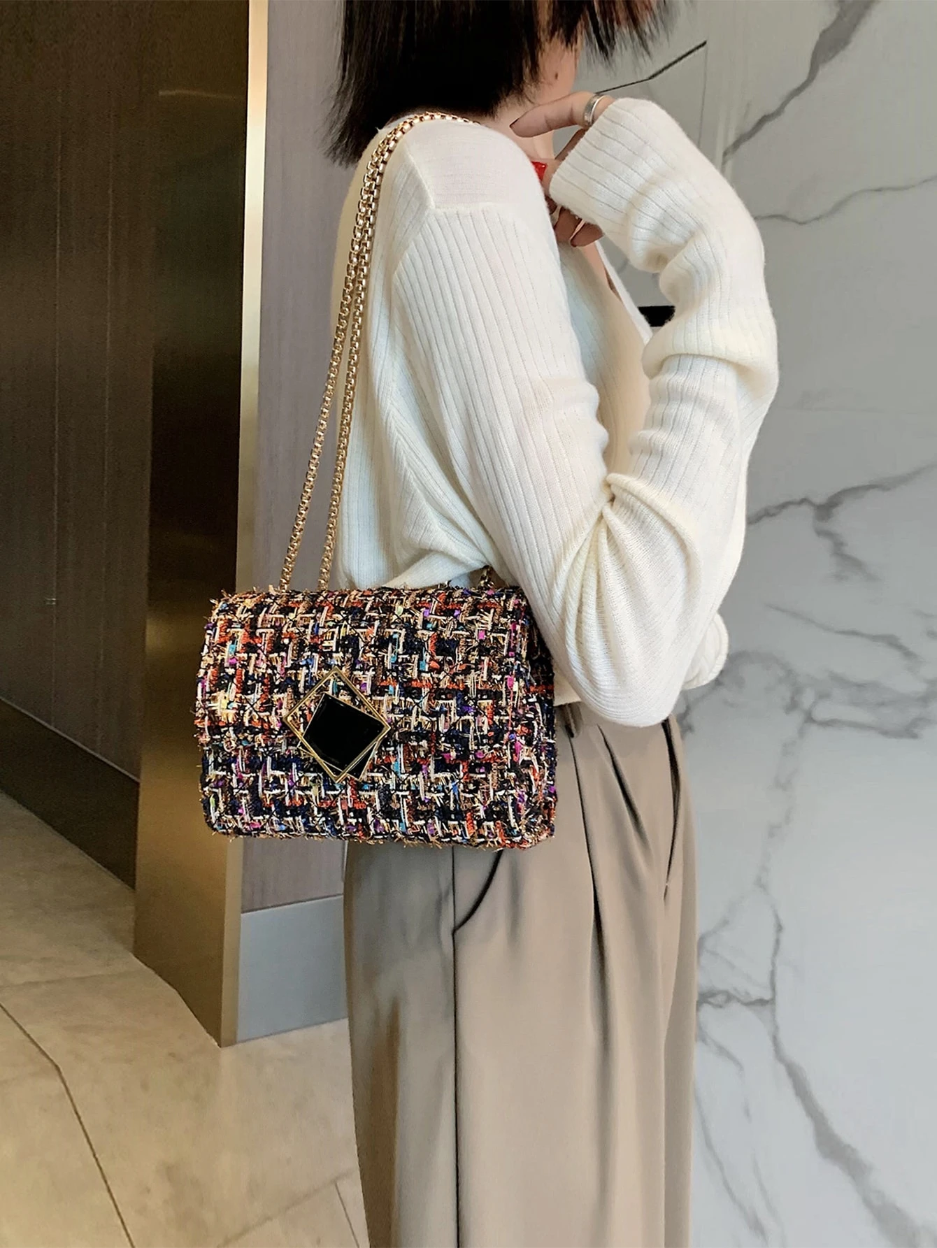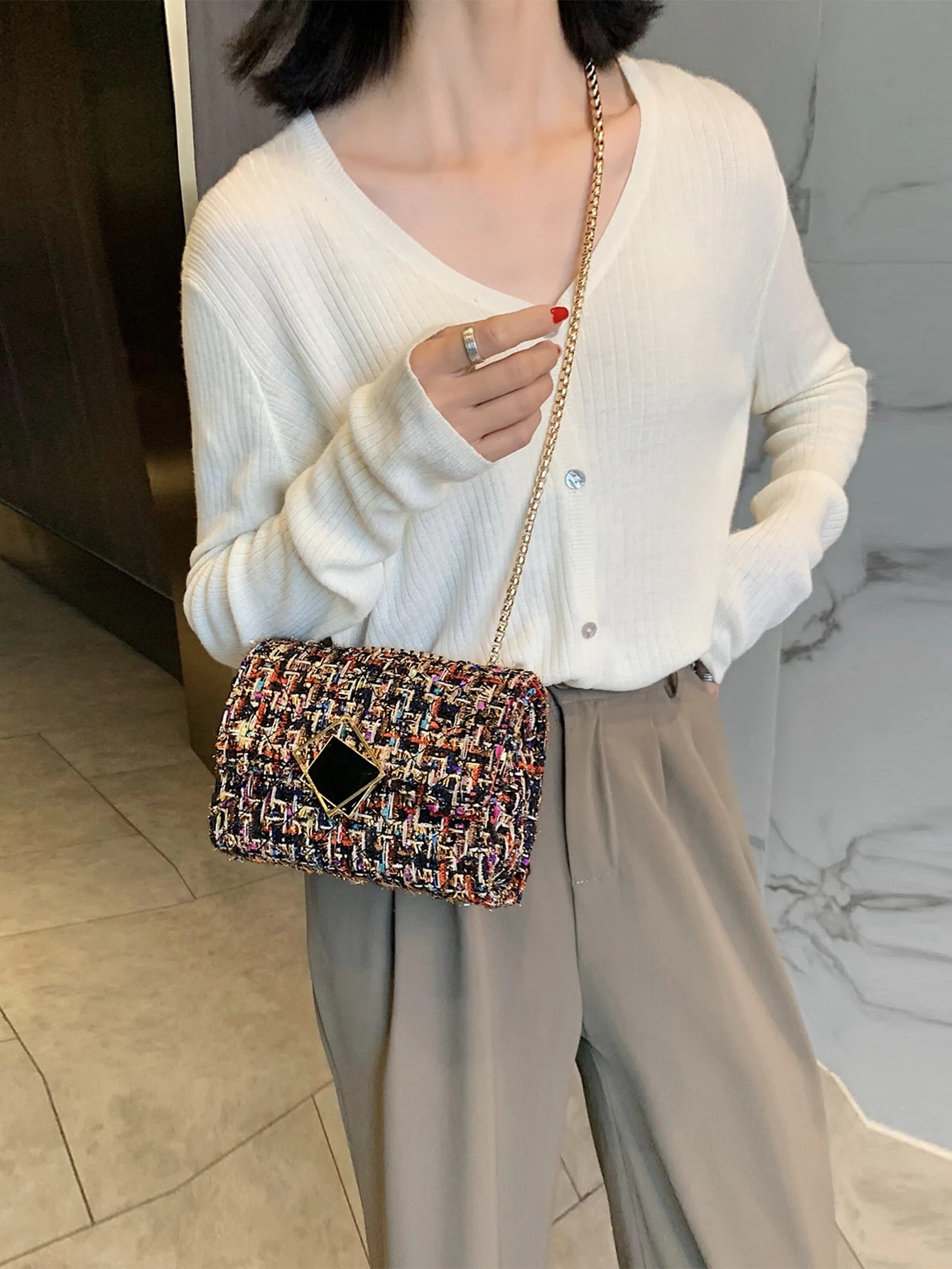 Transforme seu look com a Mini Bag de Tweed Xadrez Colorida.